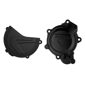 POLISPORT ZESTAW OSŁONA POKRYWY (DEKLA) ALTERNATORA ORAZ OSŁONA POKRYWY SPRZĘGŁA KTM SX/XC 125/150 '16-'18; HUSQVARNA TC 125 '16-'18 KOLOR CZARNY (8464100001+8460300001)