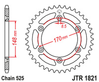 JT ZĘBATKA TYLNA 4398 41 SUZUKI GSR 750 '11-'19, GSXR 750 '00-'03, DL 1000 '15-'16, GSX 750S '15-'16 (439841JT) (ŁAŃC. 525) (CZARNA)