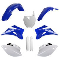 POLISPORT KOMPLET PLASTIKÓW (FULL KIT) YAMAHA YZ 250F '08-'09; YZ 450F '08-'09 W ZESTAWIE TABLICA PRZEDNIA (8658100001) I OSŁONY AMORTYZARORÓW (8351400001) KOLOR NIEBIESKI BIAŁY OEM