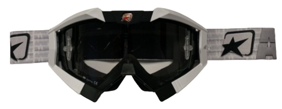 ARIETE GOGLE RIDING CROWS BASIC KOLOR CZARNY/BIAŁY/SREBRNY, SZYBKA ANTI FOG, ANTI SCRATCH, UV, ROLL-OFF READY, GĄBKA 2 WARSTWOWA