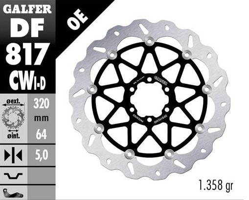 GALFER TARCZA HAMULCOWA PRZÓD BMW HP 4 '12-; S 1000R/RR '09-'23; MOTO GUZZI 1400 AUDACE '15-; 1400 CALIFORNIA '13- (PRAWA) (WAVE FLOATING) (320X64X5MM)