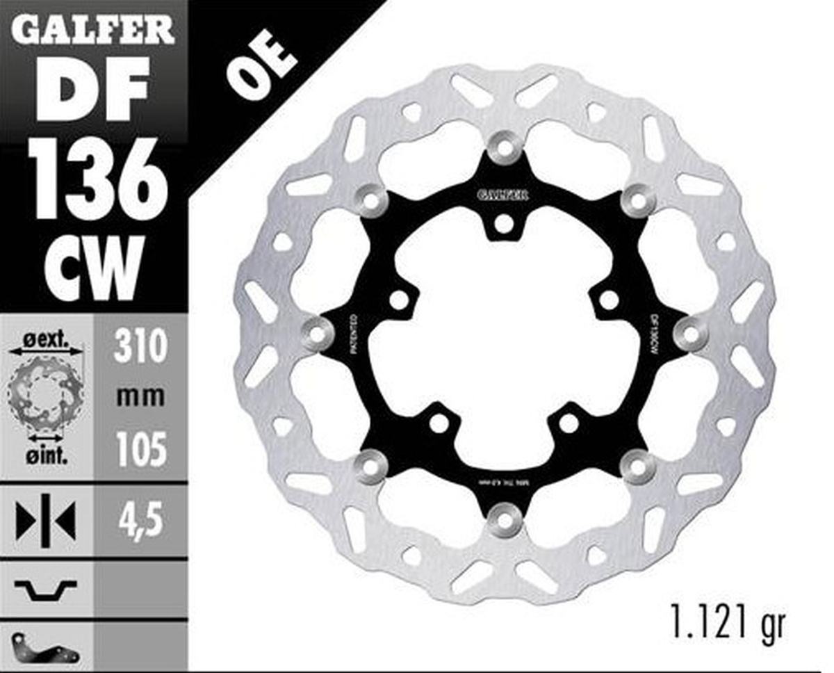 GALFER TARCZA HAMULCOWA PRZÓD HONDA CB 500X (ABS) '19-'21, CB 650R '19-'23; CBR 650R '19-'23 (WAVE FLOATING) (310X105X4.,5MM)