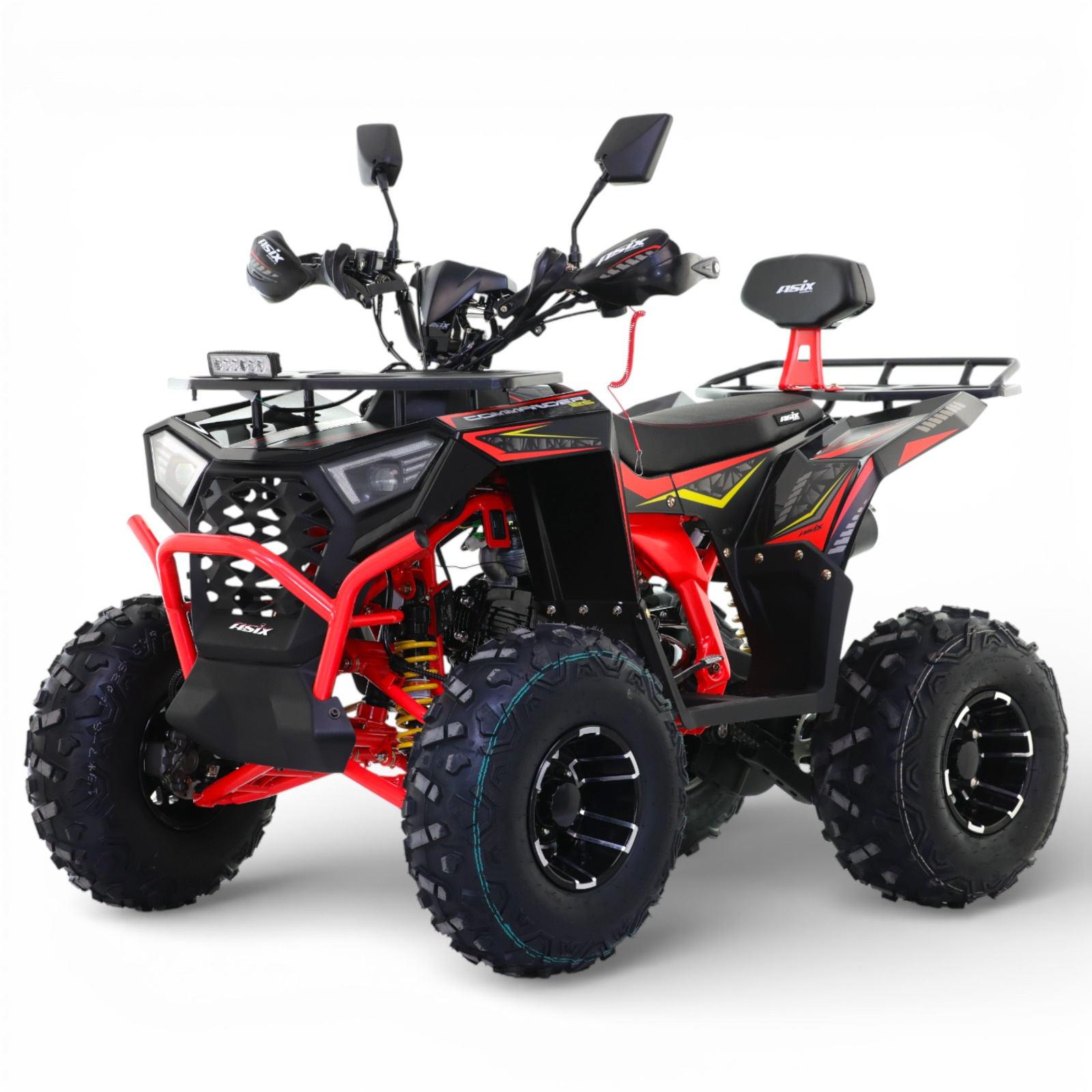 Quad ASIX Commander to pojazd z silnikiem czterosuwowym o pojemności 125cm3. Przeprawowy quad z rozrusznikiem elektrycznym, skrzynią automatyczną lub półautomatyczną oraz z biegiem wstecznym. Model charakteryzuje się solidną konstrukcją ramy oraz mocnym zawieszeniem zestawionym na 8-calowych kołach.