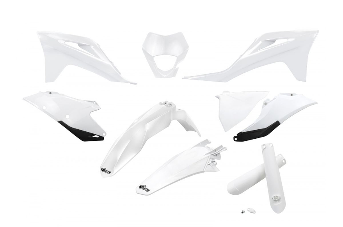 UFO KOMPLET PLASTIKÓW (FULL KIT) Z OSŁONAMI TELESKOPÓW (AMORTYZATORÓW) GAS GAS EC / EC-F 250 / 300 / 350 '21-'23 KOLOR BIAŁY