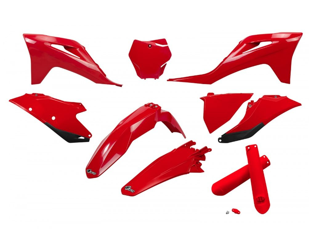 UFO KOMPLET PLASTIKÓW (FULL KIT) Z OSŁONAMI TELESKOPÓW (AMORTYZATORÓW) GAS GAS MC 125 / 250 '21-'23, EX 250 / 300 '21-'23, MC-F / EX-F 250 / 350 / 450 '21-'23 KOLOR CZERWONY