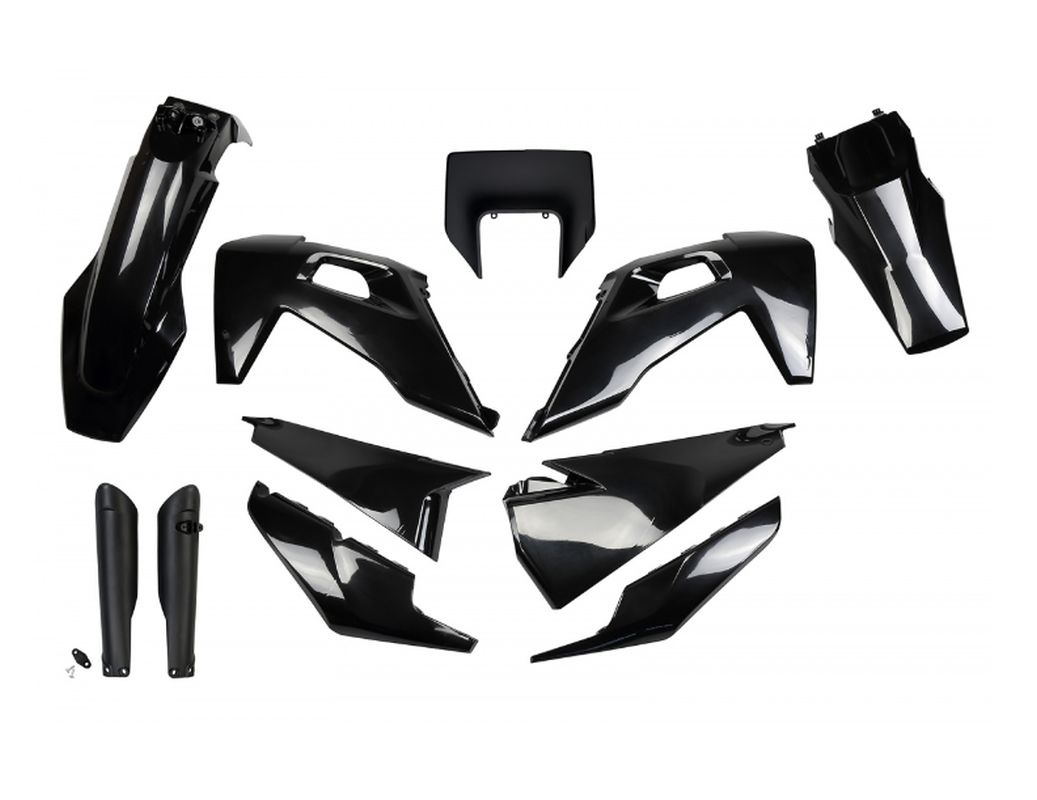UFO KOMPLET PLASTIKÓW (FULL KIT) Z OSŁONAMI TELESKOPÓW (AMORTYZATORÓW) HUSQVARNA TX / TE 125 / 150 / 250 / 300 '20-'22, FE 250 / 350 / 450 / 501 '20-'23 KOLOR CZARNY