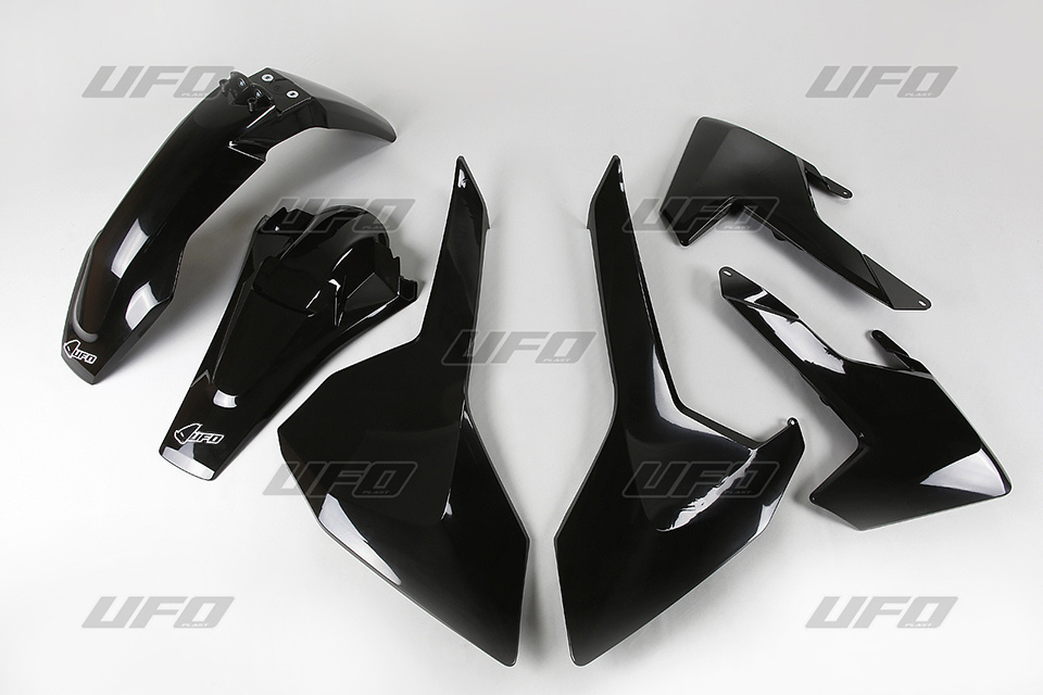 UFO KOMPLET PLASTIKÓW HUSQVARNA TE/TX 125/250/300 '17-19, FE 250/350/450/501 '17-19 KOLOR CZARNY (HU618E001)