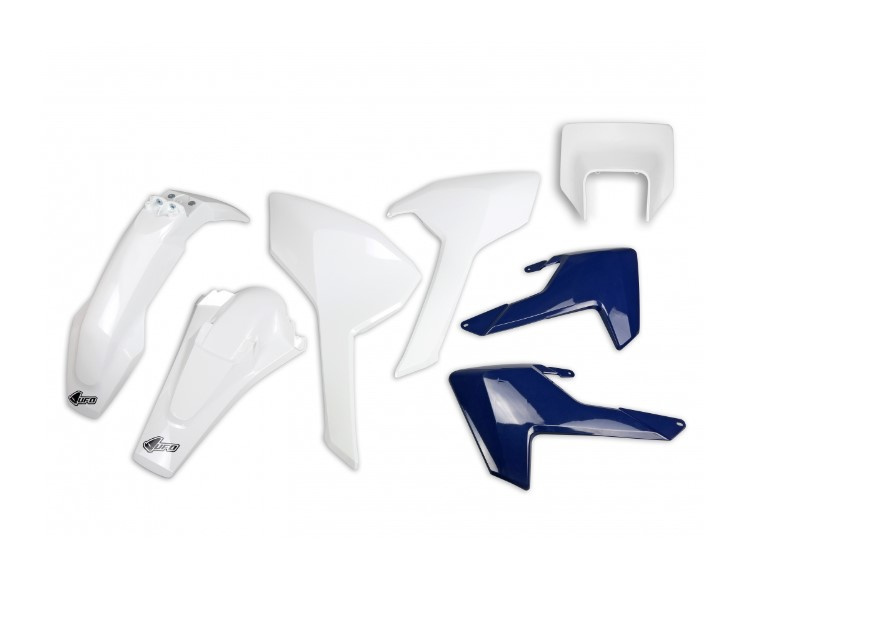 UFO KOMPLET PLASTIKÓW HUSQVARNA TX/TE/FE '17-'19 Z OSŁONĄ LAMPY KOLOR OEM (BIAŁY/NIEBIESKI) (HU621E999)